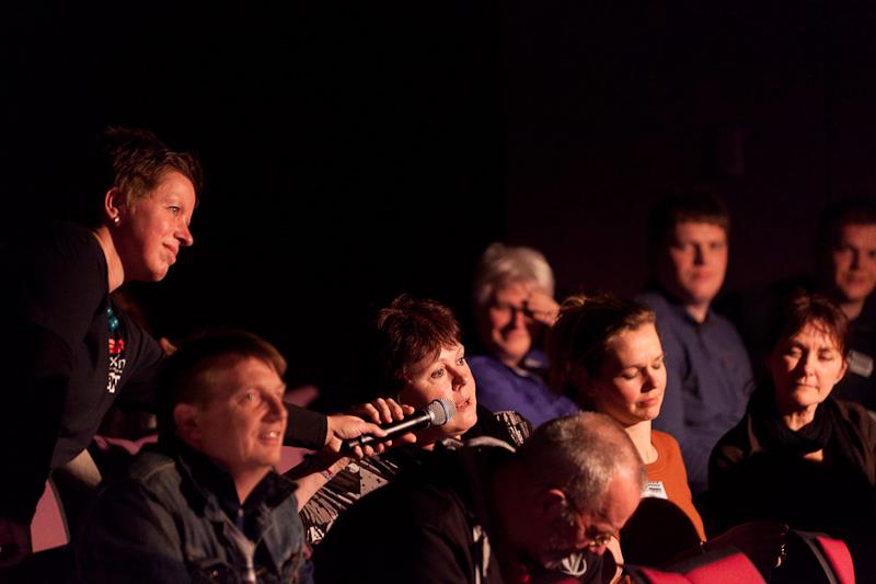 Nadat alle sprekers geweest waren, was er nog een gesprek met het publiek. Dat vond ik toch wel het mooiste en leukste moment. Niet alleen omdat de zaal weer licht was en het publiek ook te zien waren ;-). Er kwamen mooie vragen aan alle sprekers. Het was een mooie interactie, de camera was uit en de spanning was er af. Dat maakt het ook wel relaxter.